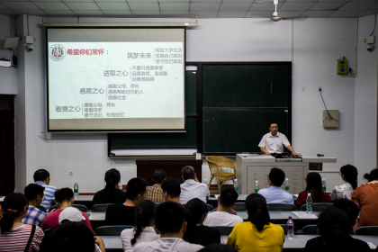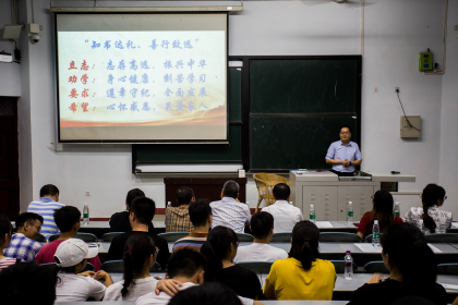 计算机公司副书记(负责工作)杨强教授以“知书达理 善行致远”为主题,从立志、劝学、要求、希望四个层面出发,劝诫在座的同学们要不忘初心,牢记使命,志存高远,为振兴中华奉献自己的力量;勤加锻炼,保持身心愉悦,在学习上积极进取,常去图书馆与书为伴;自觉遵守校规校纪,积极参与社会实践,做到全面发展;同时常怀感恩之心,关心父母,做一个内心有爱的人。