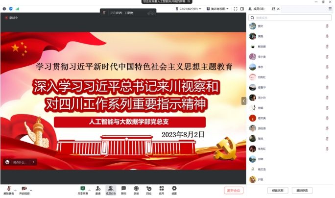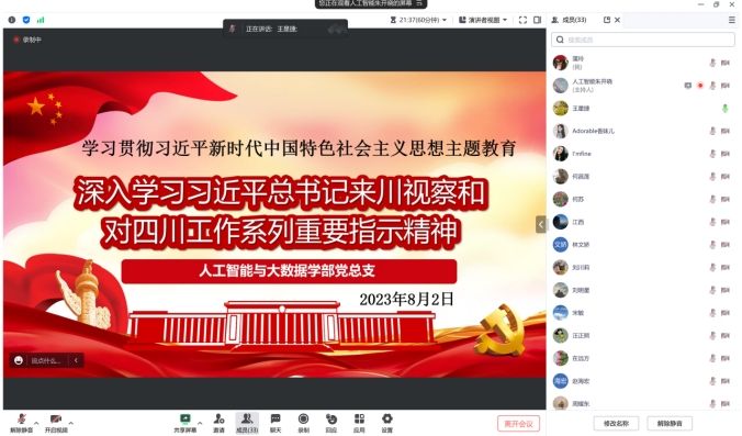 为深入开展学习贯彻习近平新时代中国特色社会主义思想主题教育,8月2日下午,人工智能与大数据学部教师党支部召开党员大会,会议由蒲玲同志主持,支部全体党员参加,采用线上会议。