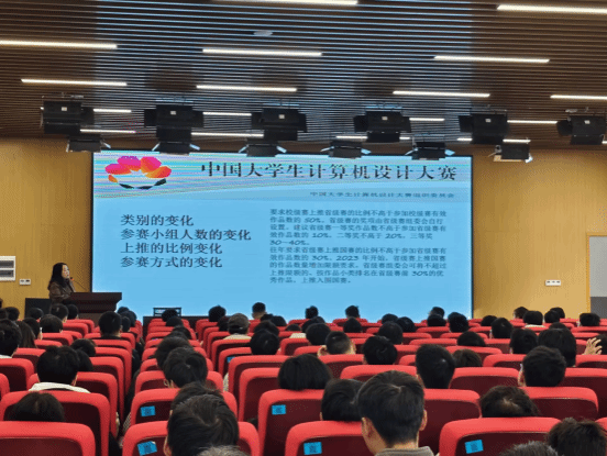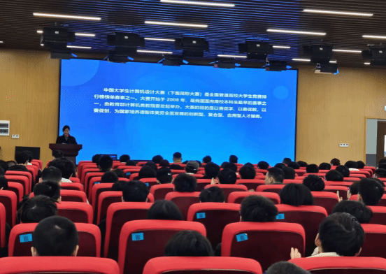 数字媒体与技术专业教研室主任蒲玲老师作为指导教师代表进行发言,她发表了“砥砺前行 共赢未来”主题的讲话,主要从四个方面展开说明。首先是大赛情况,对易文美的大赛简介给予了补充。其次是历届比赛情况与变化,详细分析了大赛每一年的变化情况和要求。随后是历届获奖情况和优秀作品,分享了历届员工在进行比赛时的获奖情况以及优秀作品产生的积极社会效应。最后,蒲玲对师生在参赛过程中容易遇到的问题给出了积极有效的建议。