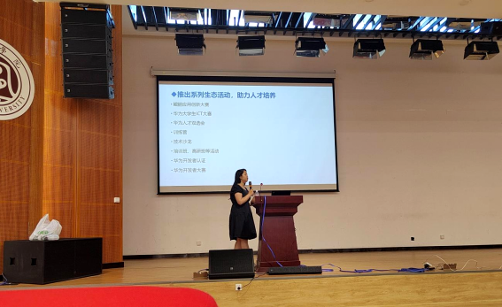 王娇娇老师在会议上对系列生态活动进行讲解,主要针对华为老员工ICT大赛进行了介绍,为员工的实践能力的提升提供了更多的途径。