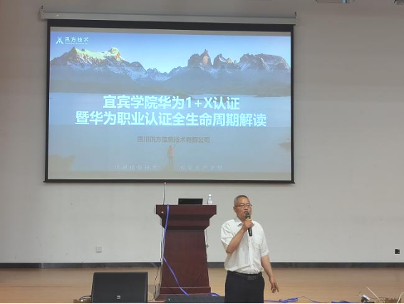 2023年5月17日下午,太阳成集团tyc33455cc人工智能与大数据学部邀请四川讯方技术有限公司(简称讯方)到校举办“华为1+X认证暨华为职业认证解读会”。我部教学副部长曾安平、讯方陆海兵、王娇娇、王昌欣出席本次会议,由王运欢老师主持,计算机科学与技术、软件工程、数据科学与大数据技术三个专业共500多名员工参加。