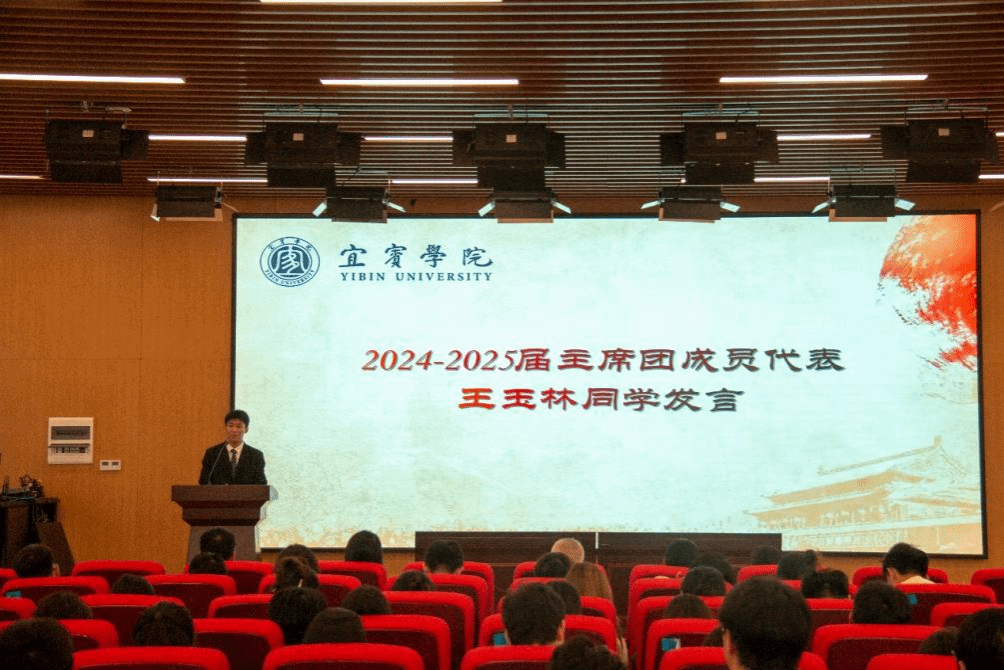 然后刘利红宣读了2024-2025届拟聘用团学会干部名单。新干部代表王玉林上台发言,他风趣幽默的语言将会议带上了一个高潮,他分享着竞选成功后的喜悦和未来一年的展望。