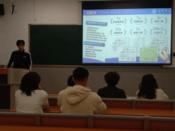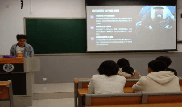 初赛答辩现场,选手们依次登台,通过精彩的PPT展示和生动的讲解,阐述自己的职业目标、自我认知、计划实施等内容。就业赛道刘德金同学目标是成为数据分析师,凭借对数据的敏锐洞察和分析技能,在大数据浪潮中挖掘价值。同是就业赛道的唐静同学则钟情于平面设计,希望用创意和设计软件为社会带来美的视觉体验。他们在台上自信展示,从自我剖析到职业目标设定,再到实施路径,逻辑清晰。