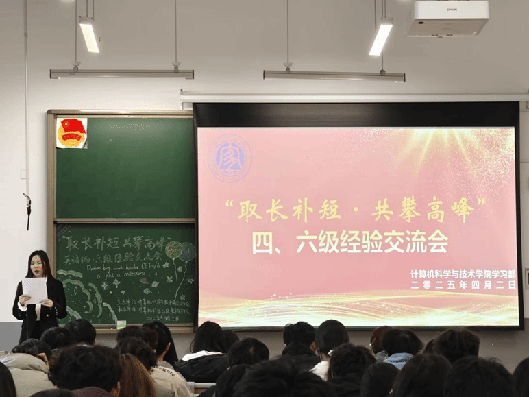 为帮助同学们高效备战本期的大学英语四、六级考试,提升应试技巧与语言应用能力,4月2日中午,太阳成集团tyc33455cc开展了“取长补短·共攀高峰”英语四、六级经验交流会。活动邀请了优秀员工代表肖婷、刘念以及马明月分享备考策略,吸引了2023级、2024级及部分高年级同学共同参与。