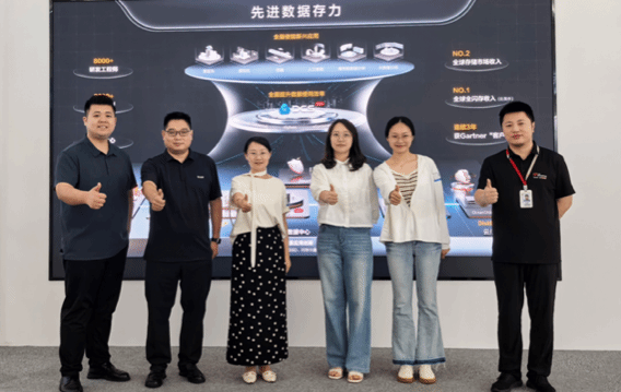 次日,探访华为技术有限公司成都研究所。在专家杨勐的带领下,参观存储体验厅,近距离了解华为在数据存储领域的最新技术突破、产品应用场景及未来发展趋势,对产业前沿有了更直观的认识。在专题交流环节,华为专家详细介绍了公司在人工智能、数据存储等领域的研发布局、人才发展战略以及对高校毕业生的能力要求。双方围绕在宜宾市数字经济人才公司共建实习实践基地、开展科研合作、定向输送人才等议题进行了富有成效的沟通,深入探讨了“学科链、产业链、人才链”深度融合的可能性。