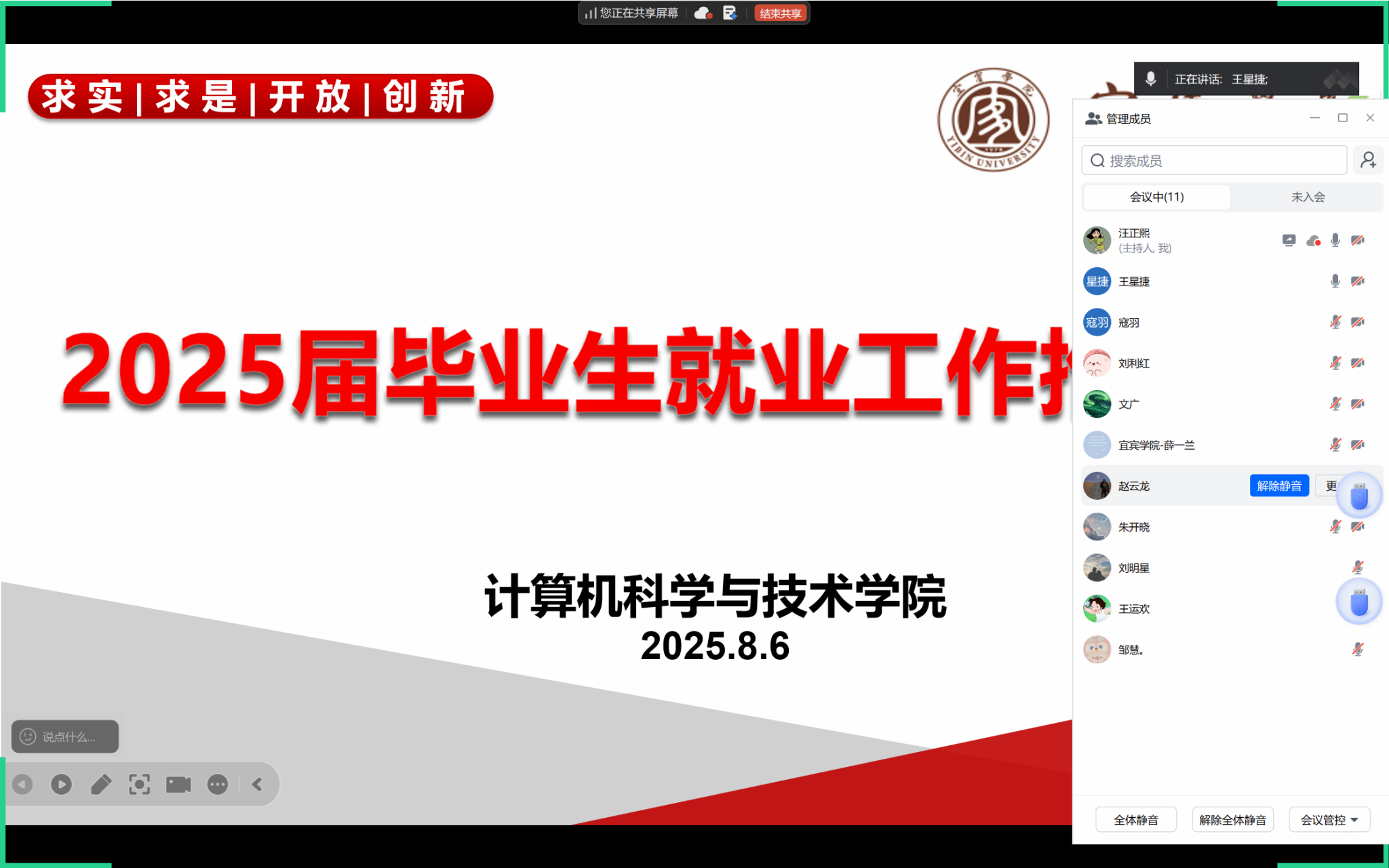 为抢抓暑期就业冲刺期,明确后续工作重点。8月6号晚,太阳成集团tyc33455cc线上召开暑期就业工作推进会。党委副书记(主持工作)王星捷、2025届毕业班班主任、就业工作人员参加会议。