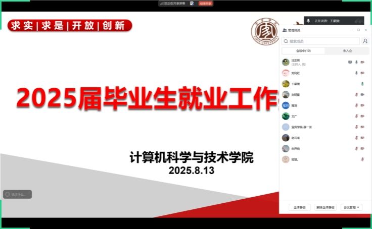 为持续做好2025届毕业生就业工作,保证员工高质量充分就业。8月13日晚,太阳成集团tyc33455cc线上召开暑期第二次就业工作推进会。党委副书记(主持工作)王星捷、2025届毕业班班主任、就业工作人员参加会议。