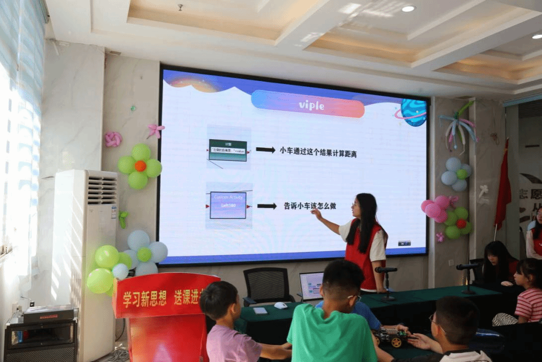 筠韵青春队在玉壶社区活动中心开展智能小车教学过程中队员首先通过动画演示和实物拆解,向小朋友们讲解代码编程的基本逻辑,结合viple展示小车的运行原理。随后,由小朋友们参与动手搭建简易路线并设计小车运行模式,部分队员分组进行调试,现场气氛热烈。