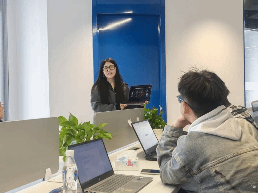清酒孵化器创始人、清华大学智能产业研究院经理助理张煜以“AI产业的发展趋势”为主题展开战略宣讲。他结合全球AI技术突破与产业落地案例,分析了人工智能在多领域的应用前景。并鼓励员工团队关注行业痛点,对接真实需求。台下员工认真记录,并就“如何快速识别行业真问题”与张煜进行了简短交流。