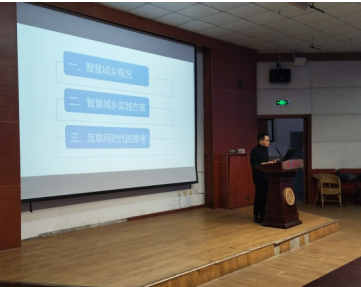 2018年11月12日下午,计算机与信息工程公司副经理杨强博士在硕勋楼A101学术厅为大安区“新时代治蜀兴川执政骨干递进培养计划”优秀年轻干部培训班做《区县智慧城乡建设实践与思考》专题报告。