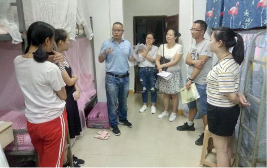公司领导分别先后走访了A区8号男生宿舍和12号女生宿舍,认真查看了员工的住宿环境、宿舍安全问题,询问员工所学专业、家庭情况、需要解决的困难等;关切的叮嘱同学们要注意身体,尽快熟悉环境;叮嘱员工们一定要注意安全问题,同时也要对诈骗提高警惕;叮嘱员工们一定要适应老员工活,并勉励同学们努力学习,提高综合素质,提升应用技能。