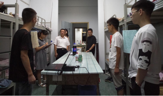 2018年9月8日晚,计算机公司经理李忠、正处级组织员荣莉、党总支副书记、副经理杨强、副经理曾安平分组带队,前往2018级新生宿舍亲切看望和关心公司2018级新生。公司学管办老师和新生班辅导员随同前往。