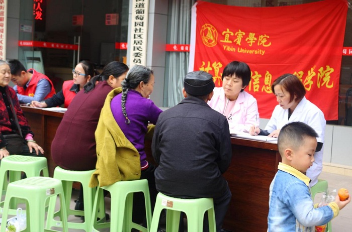 2017年11月4日,计算机公司青年志愿者分队在翠屏区安阜街道葡萄园社区举办主题为“爱心驻青协,奉献炫青春”的社区服务活动。