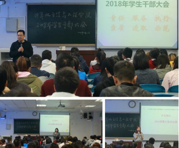 2018年3月20日中午,计算机公司在第三教学楼201教室召开以“不忘初心、2018重整行装再出发”为主题的员工干部大会。副经理杨强博士、学工办专职辅导员王利梅,陈燕秋,曾路等老师出席了会议,会议由辅导员王利梅老师主持。