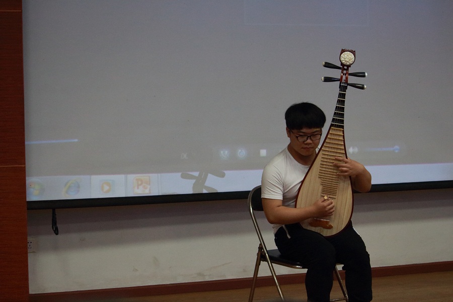 互动结束之后,计算机公司16级的李洋波同学为大家表演了一段琵琶独奏,美妙的曲调缓缓而出,引得在场观众掌声连连。