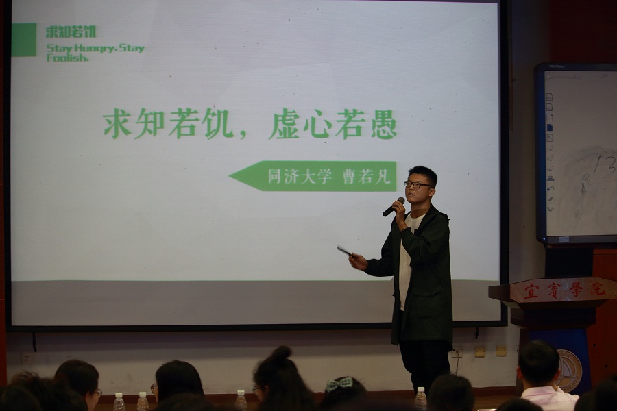 接下来,同济学子们分别进行了自我介绍,并带来了一首他们自行改编的歌曲《李庄》,让在场的师生们在悠扬的歌声中领略到了不一样的李庄,不一样的支教生活。随即,同济大学的周致远、曹若凡、白梓迪分别以《不忘初心,方得始终》、《求知若饥,虚心若愚》、《关于未来规划》为题,为大家分享了他们丰富的老员工活经历、良好的学习方法与习惯等,并希望我们每一位同学都能成为最好的自己。