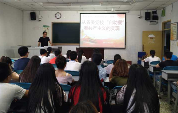 党课中,杨强副经理结合自己在省委党校的学习经历,以《坚定共产主义理想信念——从省委党校“自助餐”看共产主义的实现》为题。从“各尽所能,按需分配”为话题出发点,以省委党校自助餐就餐情况为例,分享了共产主义实现的条件性和必然性。
