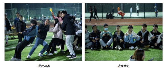 随后来到游戏环节。本环节活动采用随机编号分组的形式,员工会成员分成了五个小组,按各个游戏环节累计小组得分,每轮游戏的获胜组将会获得小礼品,而最终得分排名较高的一组将会获得大礼品。游戏环节包括“拔河”、“喊数抱团”、“击鼓传花”、“捕鱼达人”,游戏多轮进行,让同学们充分熟悉游戏规则以保证游戏的趣味性。在拔河游戏中,员工会势不可当,齐心协力战胜了艺术团和双创;在喊数抱团游戏中,员工会各小组斗智斗勇,第四组成员聚集如云,分散如风,最终以最多存活人数获胜;在击鼓传花游戏中,被“选中”的同学各展风采,深情献唱,掌声不断;在考验体力和团队协作能力的捕鱼达人游戏中,员工会凝心聚力,将“鱼儿们一网打尽”,最终获得大奖。