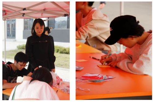 在员工党员工作站志愿者和刘利红老师的引导下,同学们纷纷坐在桌前沉思、提笔,写下了近期的烦恼琐事,有同学留下了联系方式,方便之后获得志愿者的回信,也有同学选择匿名的方式,来释放自己的压力。写完烦恼的同学,会收获一份小零食或小礼物。