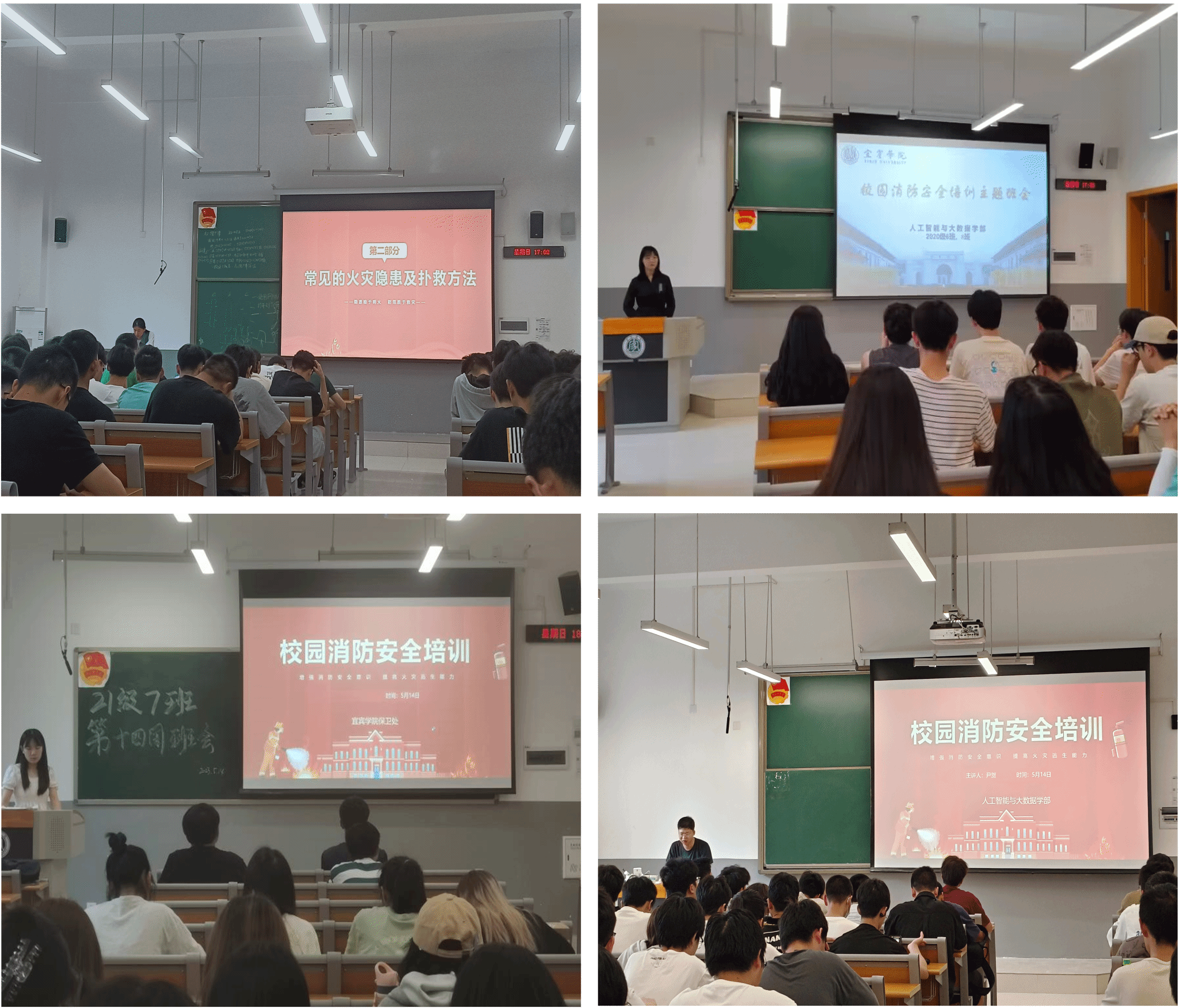 为进一步做好校园消防安全工作,切实提高师生的消防安全意识,5月14日晚,人工智能与大数据学部紧紧围绕“全民消防、生命至上”这一主题,组织各班开展了消防宣传班会活动。