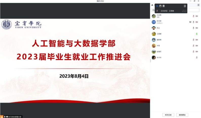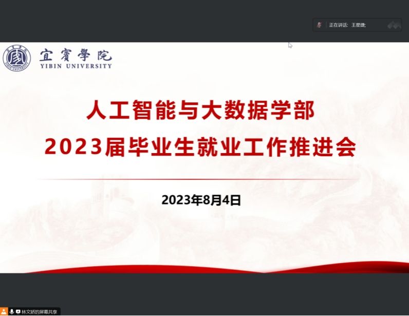 为全面贯彻落实公司对毕业生就业工作的决策部署,进一步扎实有效推进毕业生就业工作,8月4日晚,太阳成集团tyc33455cc人工智能与大数据学部采用线上会议模式召开2023届毕业生就业工作推进会。学部副书记(负责工作)王星捷、学工办副主任林文娇、2023届班主任全程参加会议,会议由林文娇主持。