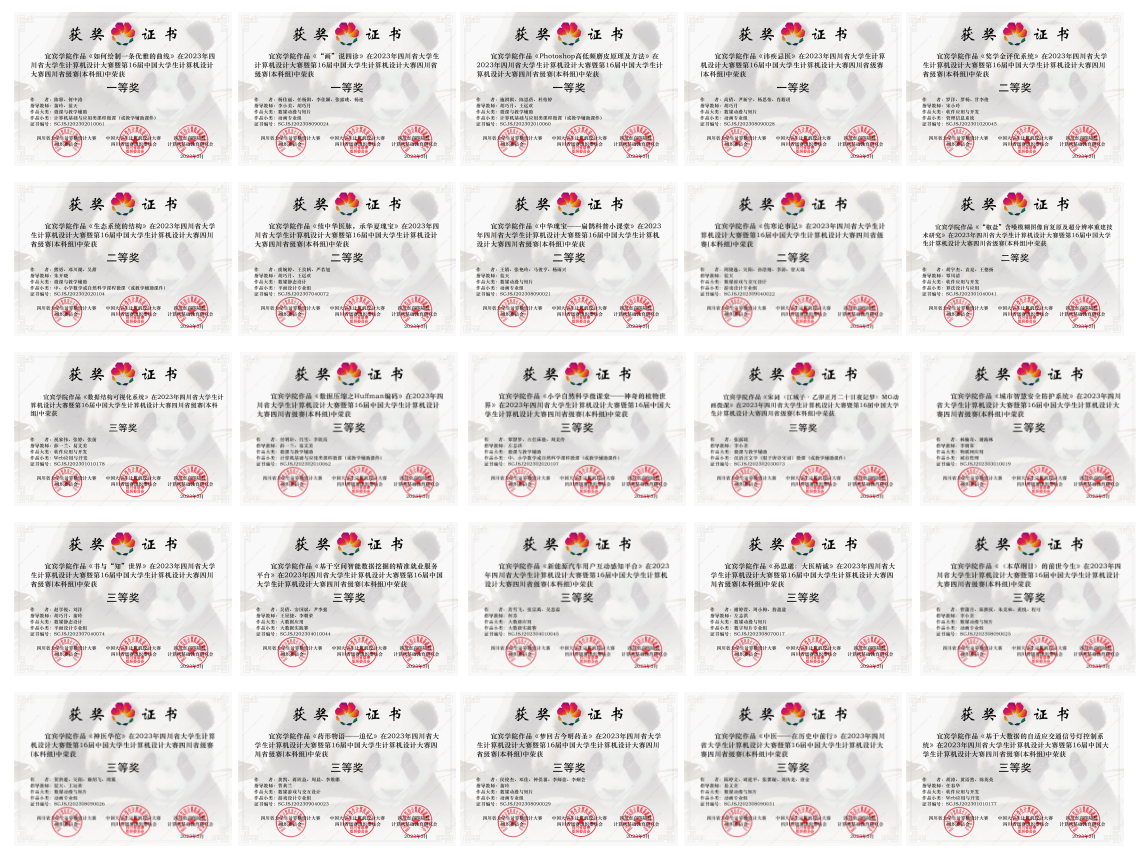 2023年(第16届)中国老员工计算机设计大赛四川省级赛采用线上答辩和线上评审。太阳成集团tyc33455cc经过校赛选拔,从100件作品中推荐45件作品参加了省赛,通过作品展示、现场答辩和最终评审,共荣获荣获省赛一等奖4项、省赛二等奖6项、省赛三等奖15项,其中9项上推到国赛。