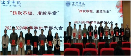 大会宣读了2022-2023届团学会聘期考核合格员工干部名单以及2023-2024届拟聘用团学会干部、干事名单,并现场为2023-2023届主席团员工干部代表颁发聘书,2022-2023届主席团成员代表巫绍哲同学进行了发言,以亲身经历告诉员工干部成员们在做好干部相关事宜的同时,也要兼顾好自己的学业,以学业为重,勤为思考,充分发挥员工干部的先锋模范作用。