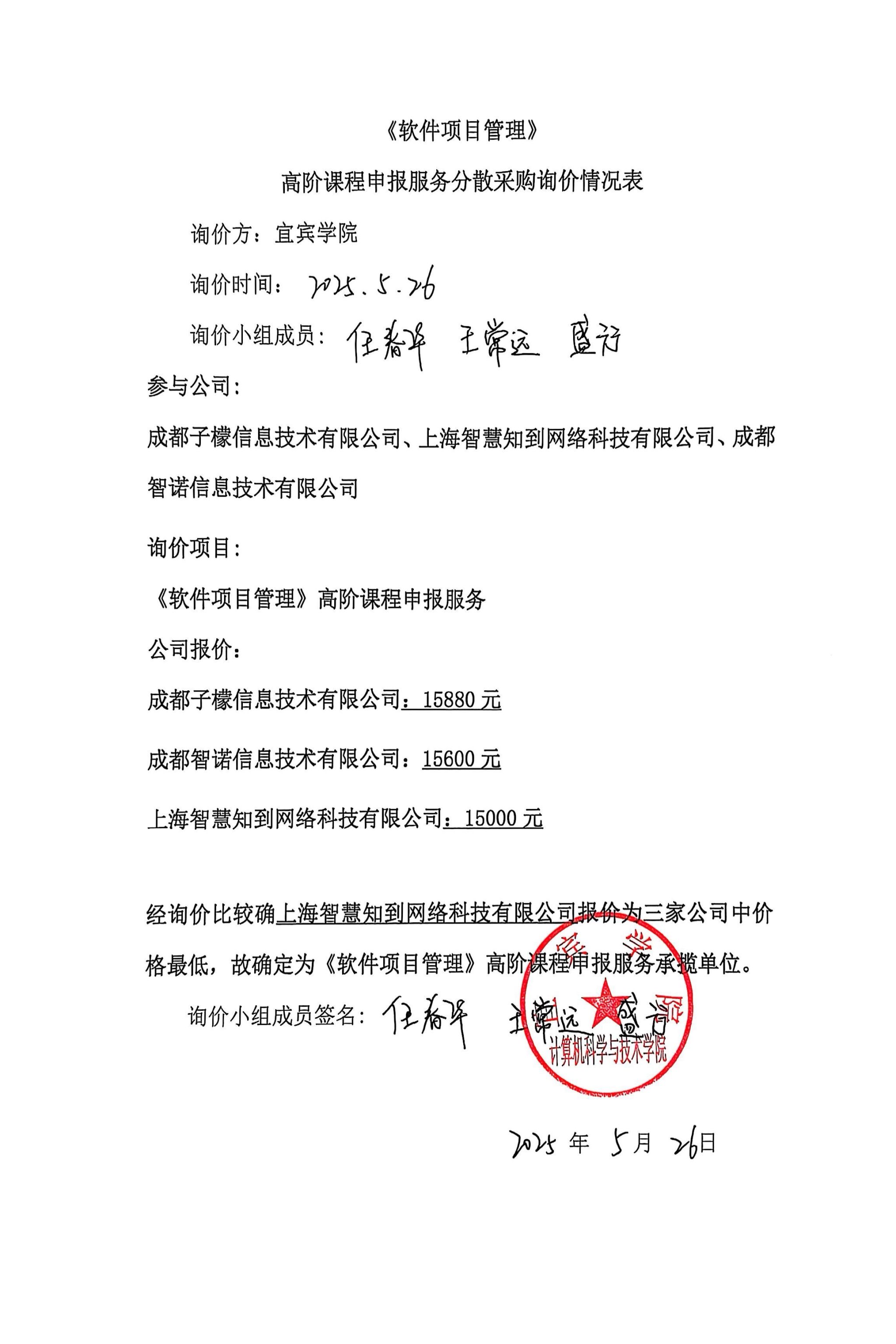 《软件项目管理》高阶课程申报服务分散采购询价情况表