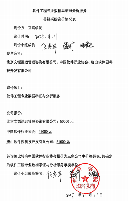 软件工程专业数据举证与分析服务分散采购询价情况表