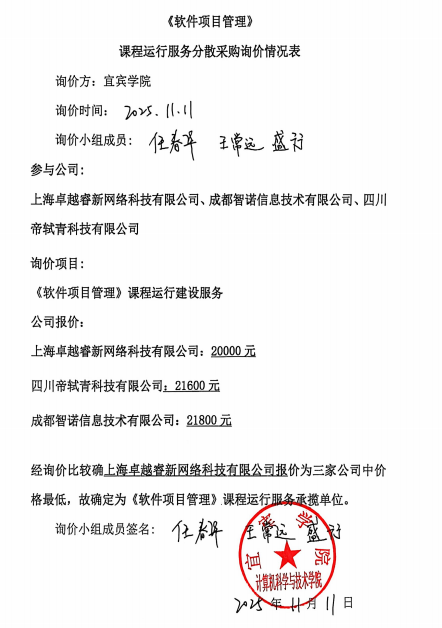 《软件项目管理》 课程运行服务分散采购询价情况表