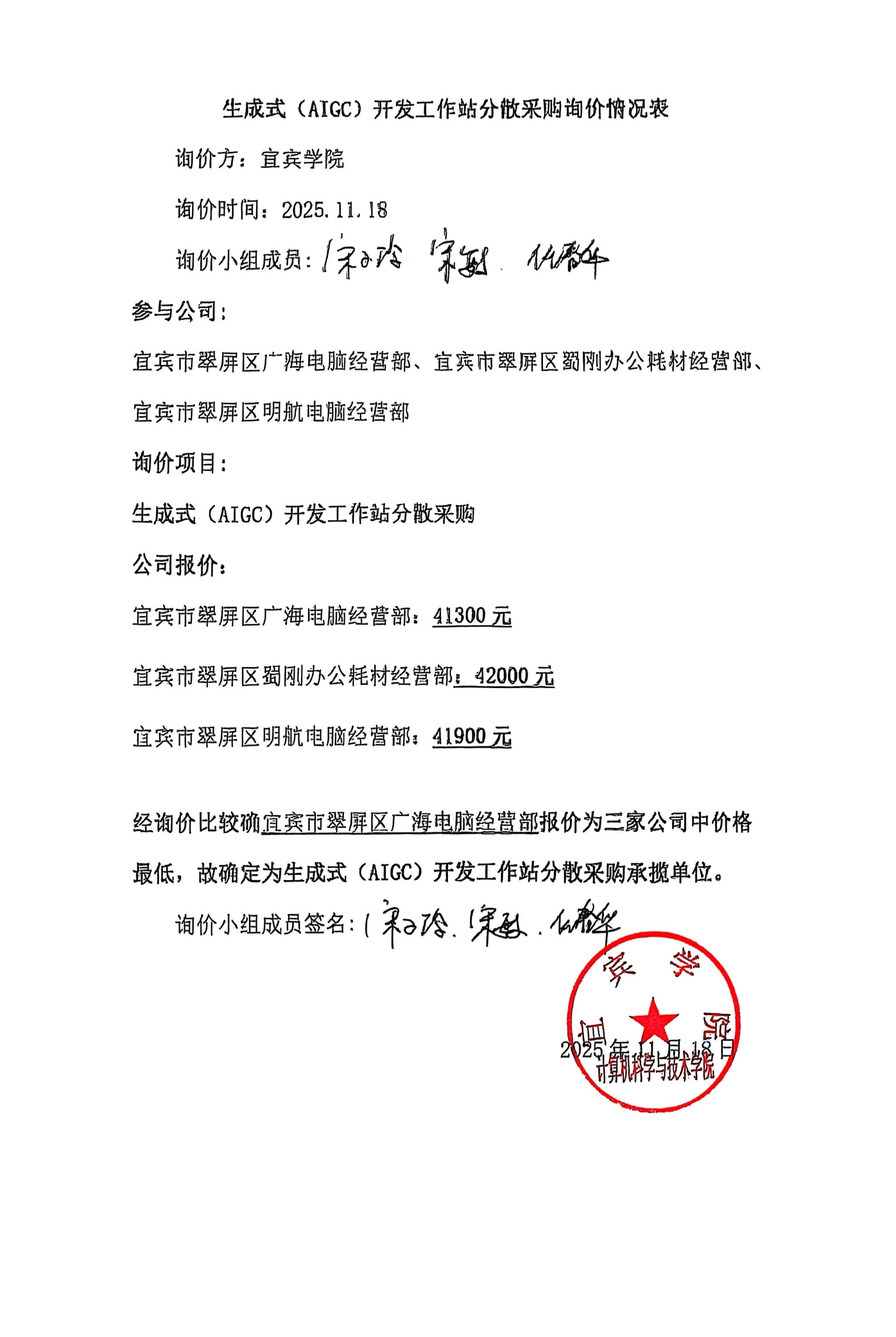 生成式(AIGC)开发工作站分散采购询价情况表