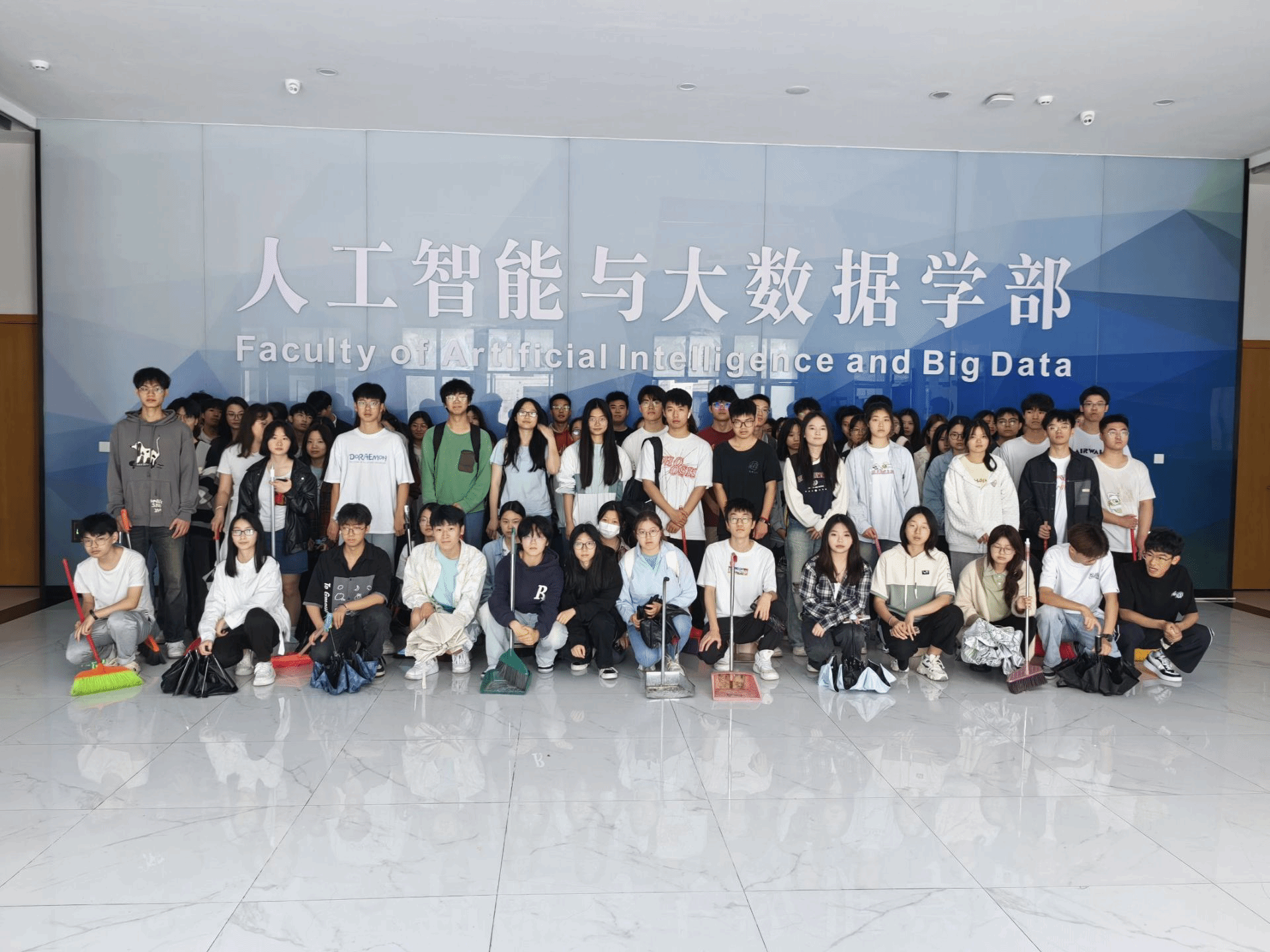 活动开始前,入党积极分子们在临港校区一期六号楼大厅准时集合,每位同学都提前准备好垃圾铲、扫帚等清洁工具,准备开始卫生清扫志愿服务。各志愿者根据任务的不同,分工合作,分配各自的工作内容和区域,以确保整个卫生打扫过程高效有序。
