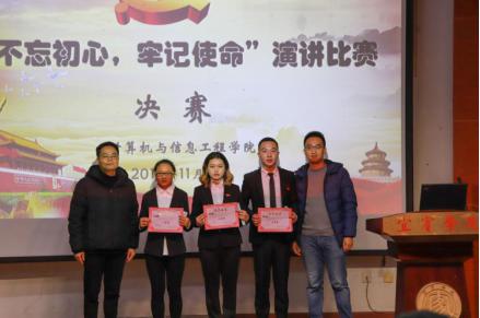 2018年11月21日中午12:40,计算机与信息工程公司党总支主办的“不忘初心、牢记使命”演讲比赛决赛在三教A101成功举办。计算机公司副经理/副书记杨强博士,员工党支部书记王利梅老师、曾路老师、陈燕秋老师,第35期入党积极分子以及公司党务秘书处员工干部近一百余人全程观看比赛。