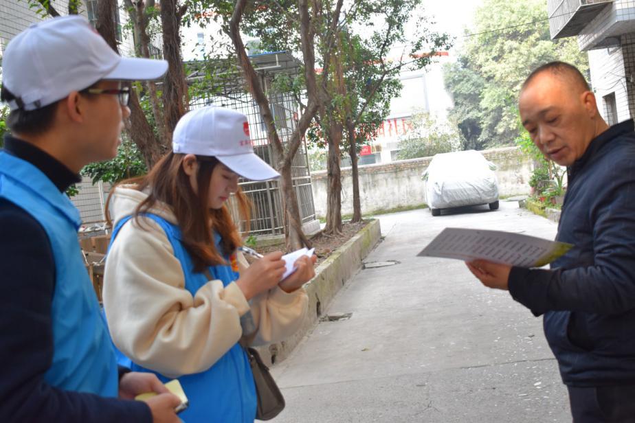 活动前,社区负责人结合宜宾市“创卫”工程为学员们开展了全面培训,简要介绍了社区居民情况和入户宣传注意事项,并对具体工作进行了分工安排。接下来,学员们分为七个小组在社区内开展了创建文明城市、争做文明市民入户宣讲及问卷调查等活动。