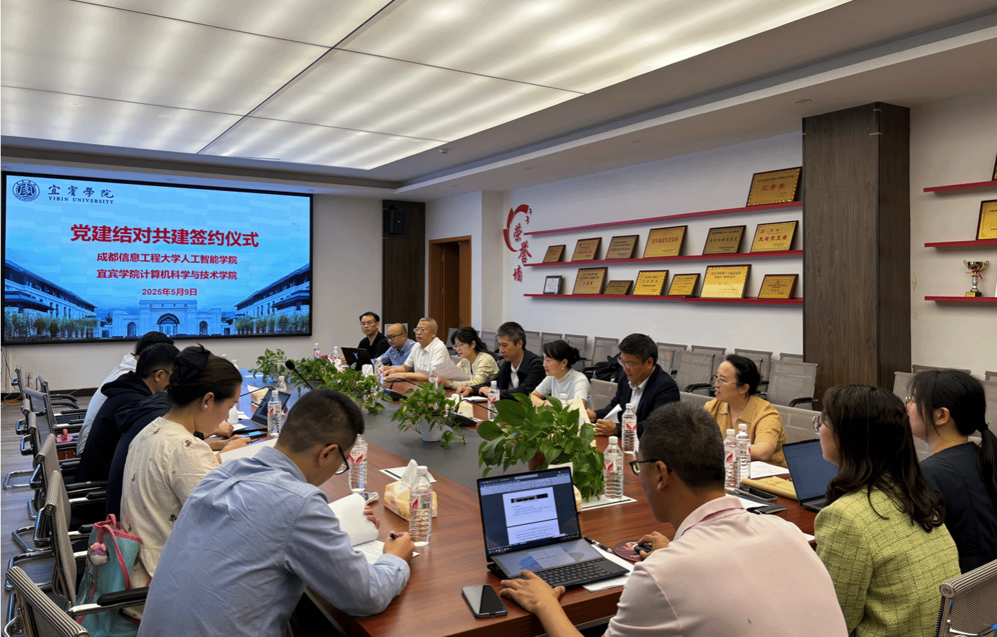 最后,在全体与会人员的见证下,王星捷副书记与林细俤书记作为双方代表签署党建结对共建协议。签约仪式前,成都信息工程大学代表团实地考察了公司“五心”党支部活动室、山地数字农业工程实验室、智慧城乡与大数据应用研究院等,双方围绕党建引领、产教融合与协同创新等主题展开深入交流。