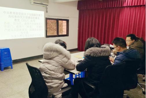 学习会第一阶段,杨强副经理首先领学了中共教育部党组第41号文件《中共教育部党组关于加强新形势下高校教师党支部建设的意见》全文,分别从“充分认识加强高校教师分党支部建设的重要性紧迫性”、“充分发挥党支部的主体作用”、“突出抓好党支部教师思想政治工作”、“切实优化党支部设置”、“严格规范党支部各项当的组织生活制度”、“优选配强党支部书记”、“着力做好党支部在青年教师中发展党员工作”以及“切实加强对高校教师党支部建设工作的领导”八个方面充分解读了该文件,提到要在有机会的条件下要吸纳更多优秀青年教师加入党组织,加入我们教师党支部,提升党组织战斗力。