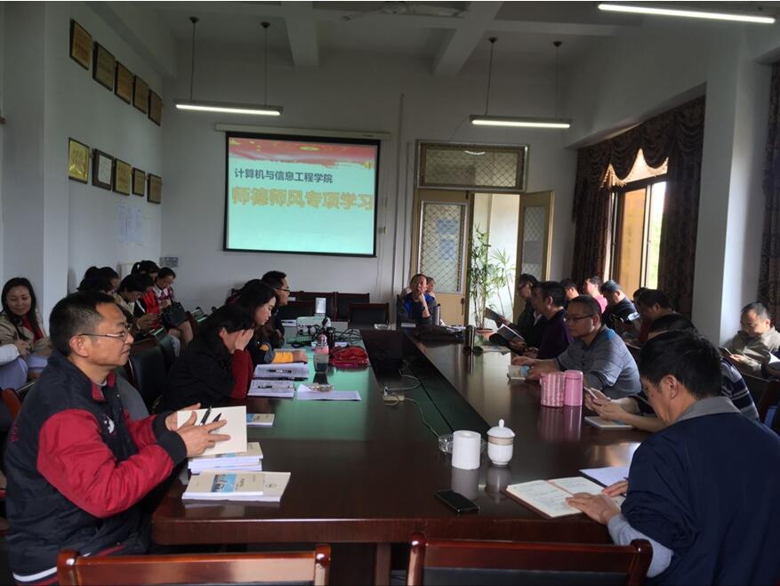 4月5日下午,在综合楼三楼会议室召开教职工师德师风专题教育学习大会。计算机与信息工程公司全体教职工出席大会;副经理杨强博士主持会议。