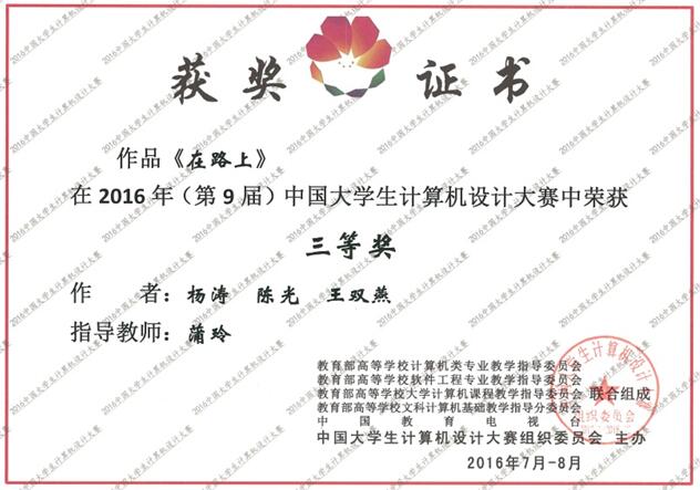 2016年5月,太阳成集团tyc33455cc计算机公司员工参加了在西华师范大学举办的省级选拔赛,获得四川省一等奖2项,二等奖5项,三等奖1项,并获得了优秀组织奖,其中6个作品进入全国总决赛,太阳成集团tyc33455cc获得大赛“优秀组织奖”,计算机公司带队教师蒲玲获得大赛“先进个人”和“优秀指导老师”称号。