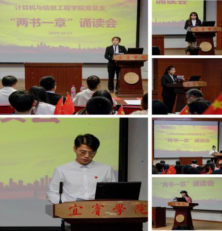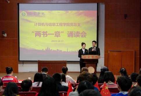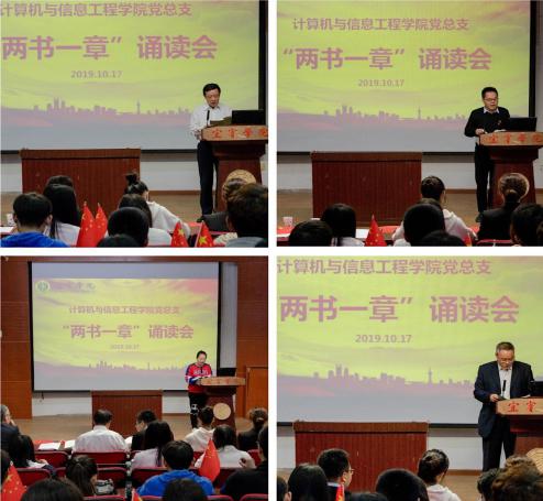 根据公司党委“不忘初心、牢记使命”主题教育安排,推动“两书一章”学习活动取得实效,营造浓厚的学习氛围, 10月17日中午,计算机公司党总支在三教学楼A101教室组织开展了“两书一章”诵读会,计算机公司处科级领导干部,党员教师和员工党员,以及第11期发展对象培训班全体学员参加了此次活动。