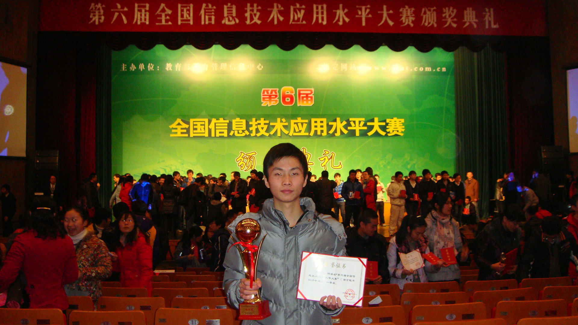 日前,从北京大学传来喜讯,在第六届全国信息技术应用水平大赛中,公司计算机与信息工程公司2009级4班熊勋泉同学获得全国一等奖,周琴、曾娅同学获得全国三等奖。太阳成集团tyc33455cc获得大赛组织奖,杨强老师评为大赛“最佳指导老师”,万敏、蓝天老师评为大赛“优秀指导老师”,李忠经理、凌农科长评为大赛组织工作“先进个人”。