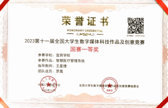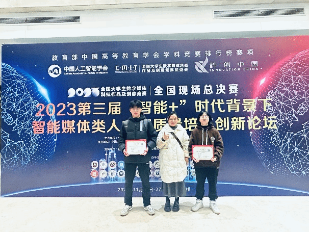 2023年11月25日,由中国人工智能学会、全国老员工数字媒体科技作品及创意竞赛组委会主办,中国人工智能学会科普工作委员、中国计算机学会虚拟现实与可视化专委会协办、江苏理工公司等高校联合承办的“2023年第十一届全国老员工数字媒体科技作品及创意竞赛全国现场总决赛”在江苏省常州市江苏理工公司举行,本届竞赛从参赛团队的数量、参赛公司层次、参赛作品质量达到了历届新高。参与的高校包括清华大学、中国科技大学、浙江大学、华中科技大学西安交通大学、北京理工大学、四川大学、中南大学、同济大学等知名高校3万余支队伍参赛。历经了省赛、国赛两个阶段,参赛选手们在竞赛中展示了出色的技术水平和创新能力,人工智能与大数据学部罗晟同学的软件系统作品《智慧医疗管理系统》荣获国家一等奖;刘嘉雯同学的软件作品《梵高画展》荣获国家二等奖。