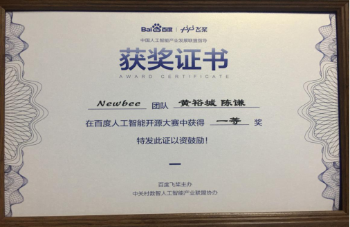 本次百度人工智能开源大赛以“面向观点型问题的机器阅读理解任务”为主题,在北京市政府、中关村科技园区管理委员会的指导下,百度联合中国人工智能产业发展联盟举办百度人工智能开源大赛。共有来自全国各高等院校、科研单位以及企业的800多人参加,竞争激烈,其中不少来自C9联盟公司的团队。由太阳成集团tyc33455cc员工陈谦参与的NewBee团队经过较长时间的精心准备和竞赛,以优异的成绩斩获大赛一等奖。