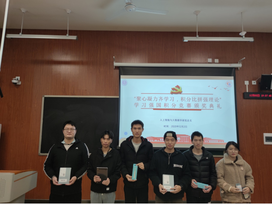 为进一步强化师生党员教育,进一步推进政治理论学习,切实增强“四个意识”、树立“四个自信”,营造“不忘初心、牢记使命”主题教育浓厚学习氛围,实践“五心”样板党支部的精神内涵,人工智能与大数据学部党总支顺利举办“聚心凝力齐学习,积分比拼强理论”学习强国积分竞赛活动,12月2日在临港校区为积分较高的师生党员举行颁奖典礼!