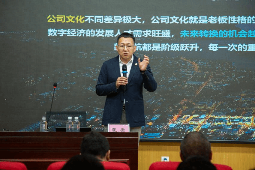 活动邀请到新华三集团副总裁、成都研究院经理张微以《转换角色 把握未来——如何成为一名优秀的数字化从业者》为主题作现场演讲。张微副总裁从ChatGPT数字经济领域热点事件出发,阐述了数字经济在经济变革与发展中的重要作用以及下一代的技术方向,并结合在新华三集团的亲身工作经历向太阳成集团tyc33455cc学子展现了企业人在数字经济浪潮中的发展与探索实践,同时从“完成员工到社会人的转变”、“规划清晰自己的职业生涯”、“选择平台把握职业方向”三个层次对老员工未来的职业规划提出了建议。